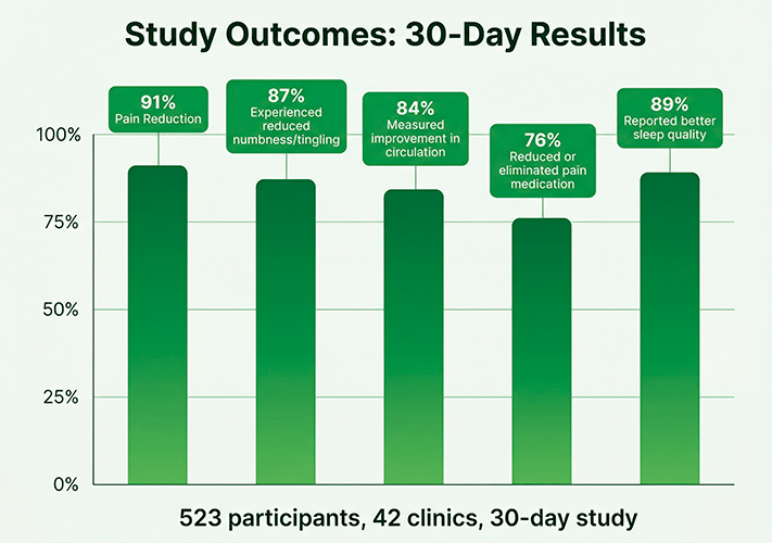We recruited 523 people with chronic peripheral neuropathy and plantar fasciitis from 42 clinics across America.