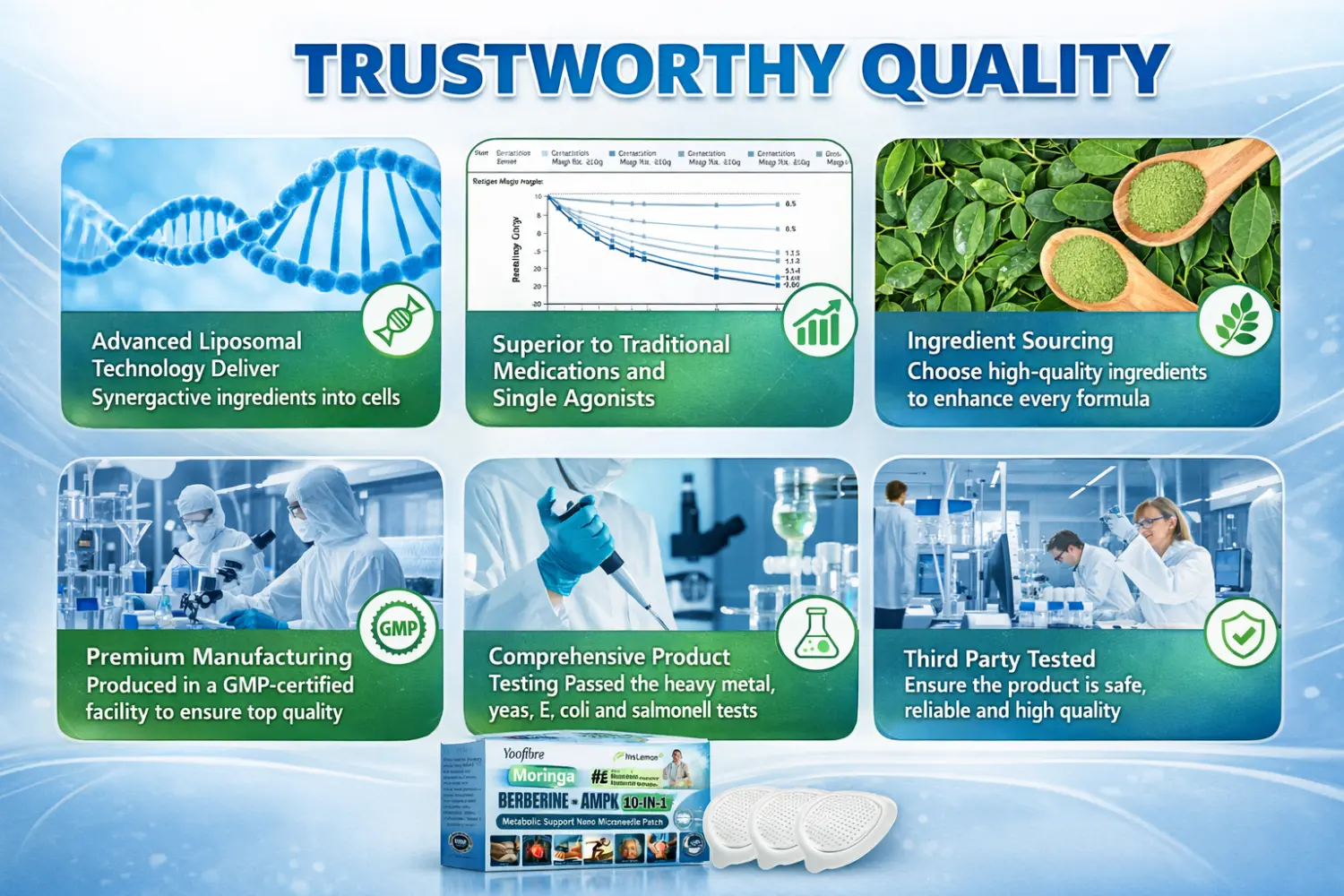 Safe and Effective: Our advanced nano microneedle patch is made with natural ingredients and a science-based formulation, and is manufactured in FDA-compliant, GMP-certified facilities to ensure quality and safety.