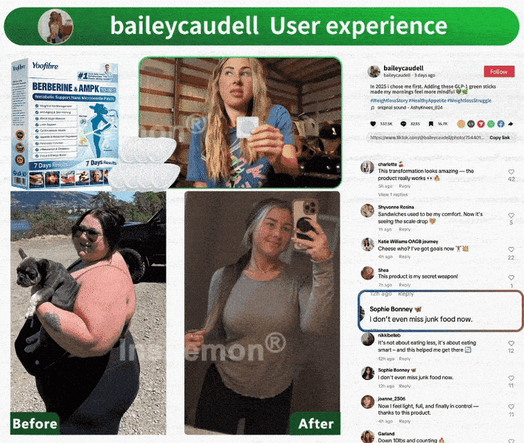 "Hospital tests showed fatty liver, high blood pressure, and high cholesterol. My doctor said bluntly: 'Lose weight or face serious consequences.' Those awful nighttime hunger pangs kept me up for hours. When I discovered Yoofire 𝗠𝗶𝗰𝗿𝗼𝗻𝗲𝗲𝗱𝗹𝗲 𝗣𝗮𝘁𝗰𝗵 everything changed! My cravings vanished, the hunger episodes stopped, and I quit craving wine before bed. Since August, I've lost 130 pounds. My fatty liver went from severe to mild, blood pressure and cholesterol are nearly normal. I have my energy back and feel like myself again. This stuff is a total game-changer."--Bailey Caudell, Single mother