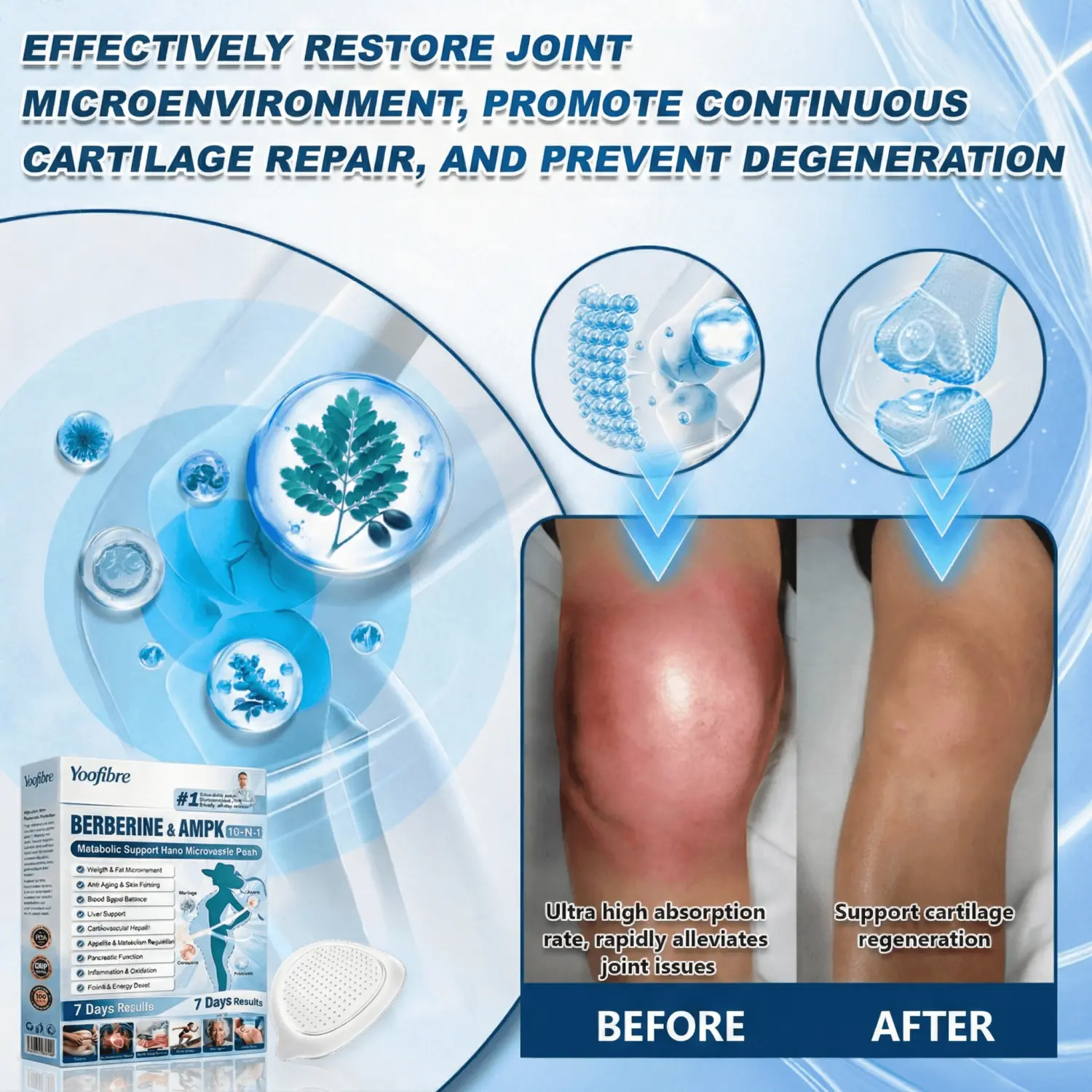 Resveratrol's anti-inflammatory activity helps improve soft-tissue flexibility, reduce joint swelling, protect cartilage and bone density, and relax tense muscles-effectively interrupting the cycle of chronic systemic inflammation that often worsens joint discomfort. Studies show that this nutrient combination provides both immediate soothing relief and long-term structural support, helping prevent joint degeneration and bone loss. In user experience studies, up to 96.65% of participants reported a significant reduction in joint pain within just two weeks, along with improved mobility and daily comfort.