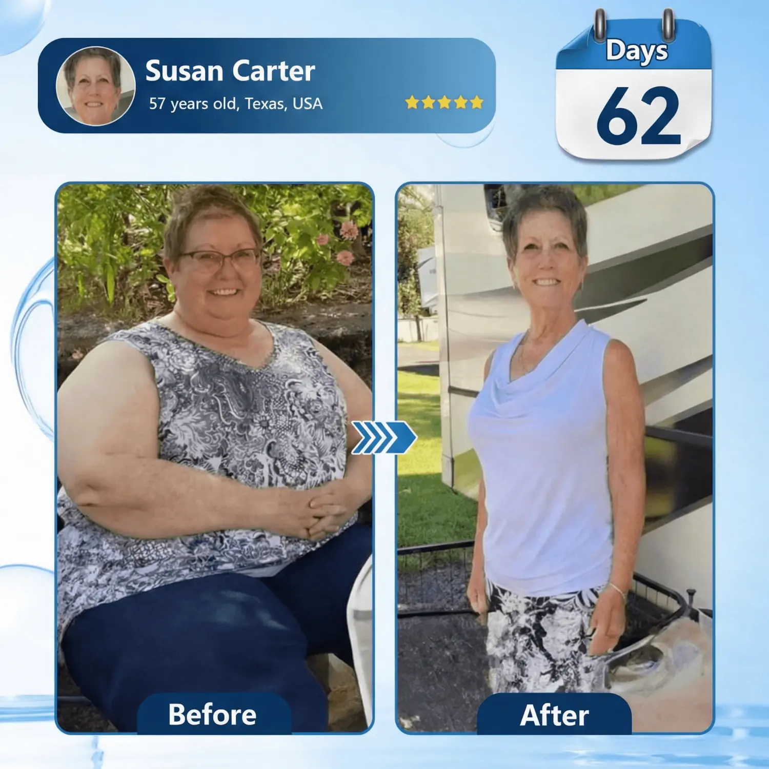 Now, I'd say I've regained at least 80% of my energy. I can play ball with my grandkids again, and I'm even planning to get back on the tennis court. Honestly, I don't know if it's just the Yoofire 𝗠𝗶𝗰𝗿𝗼𝗻𝗲𝗲𝗱𝗹𝗲 𝗣𝗮𝘁𝗰𝗵  itself, or the combination of the formula with my new exercise routine-but one thing is certain: since I started Yoofire, I've gotten my life back.-Susan Carter, 57 years old, Texas, USA
