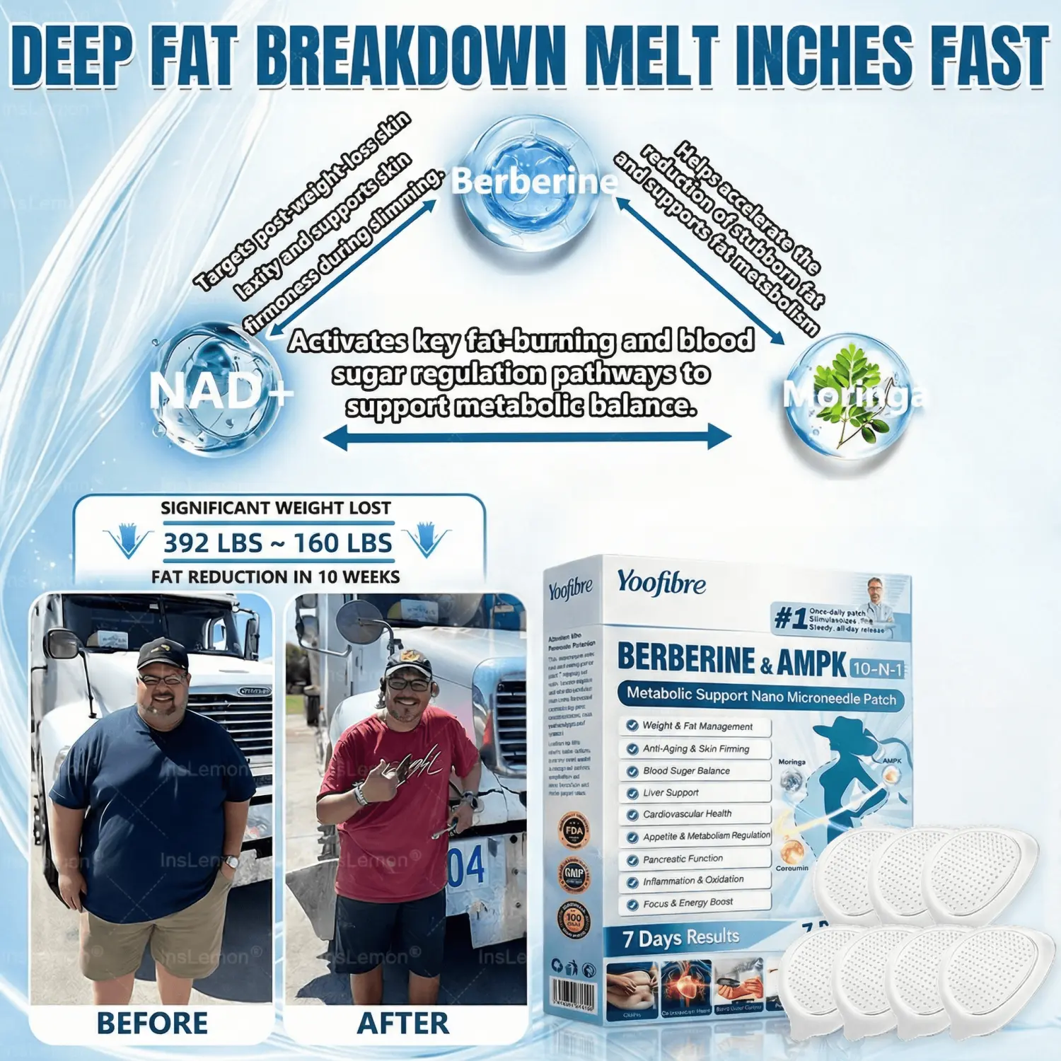 "I'm not sponsored, and no one paid me to say this. Four months ago, I could barely climb into my truck without getting out of breath. Years of long-haul driving had completely drained my energy. Yoofire 𝗠𝗶𝗰𝗿𝗼𝗻𝗲𝗲𝗱𝗹𝗲 𝗣𝗮𝘁𝗰𝗵 honestly changed everything for me. I started using the patch daily, and by the third week, I had enough energy to handle a full 12-hour route without struggling. No more afternoon crashes. No more relying on multiple energy drinks just to get through the day. Over 14 weeks, I lost 105 pounds, and for the first time in years, I actually feel like myself again-stronger, clearer, and full of life, like I'm back in my 40s."- johnnycool, Professional Truck Driver