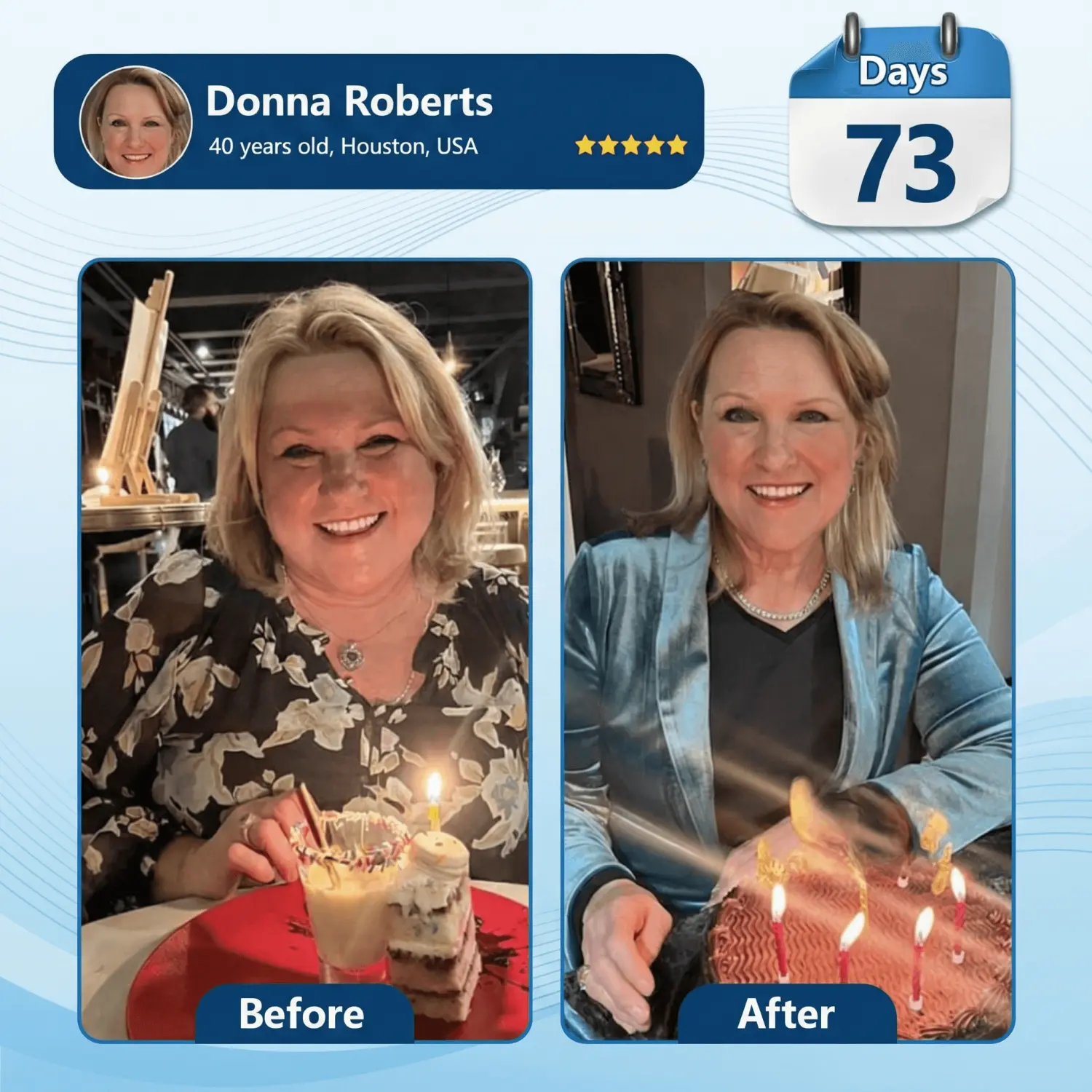 Three months later, blood pressure dropped to 125/78, lost 45 pounds. But the real game-changer was getting my brain back. Energy's through the roof, classroom management is smooth again. Kids actually said I seem like a different person."-Donna Roberts, 40, Houston